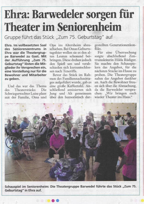 Im Hause Breimeier soll der 75. Geburtstag der Oma gefeiert werden. Luise, die Schwiegertochter, hat alles organisiert. Sie will, dass es ein schönes Fest wird, und das nicht ohne Hintergedanken. Sie will Oma und Opa ins Altersheim abschieben, und das soll an diesem Tag mit der Verwandtschaft besprochen werden. Alles hat sich Luise wundervoll vorgestellt. Doch dann kommt es ganz anders. Jeder hat seine eigenen Vorstellungen, wie dieses Fest gefeiert werden soll. Besonders die Jubilarin. Außerdem spricht sie nicht mit ihrem Mann, und den jungen Pfarrer will sie auch nicht sehen. Der Opa hat nur Unsinn im Sinn, weil es ihm nicht passt, dass er nicht der Mittelpunkt ist. Jochen, Luises Mann, betrinkt sich. Der Pfarrer versucht sein Bestes, aber er kennt die Jubilarin noch nicht. Der Bürgermeister hat eine Geburtstagsansprache vorbereitet, aber er kann gerade mal einen Witz erzählen. Und am Schluss haben Oma und Opa noch eine dicke Überraschung parat.